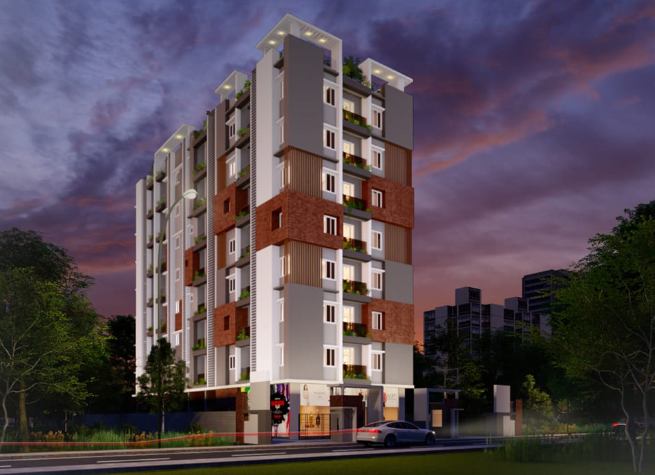 Discover your perfect home in Rajarhat—a modern haven where dreams come to life. This iconic G+7 Storey Framework harmoniously designed for 35 beautiful families’ stands as a testament to modern elegance. Designed with spacious and airy rooms, it offers liberty for personalization, while the terrace blooms with verdant greenery, a serene escape from the city’s pulse. Here, every detail is meticulously crafted—a symphony of comfort, convenience, and sophistication. With a plethora of options, our properties invite new homeowners to invest in their aspirations.
